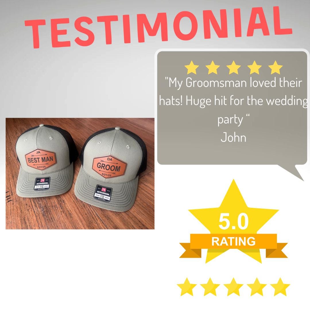 Personalized Groomsmen Hats - Custom Wedding Party Caps - Leather Patch Trucker - Best Man Gift - Bachelor Party Hats